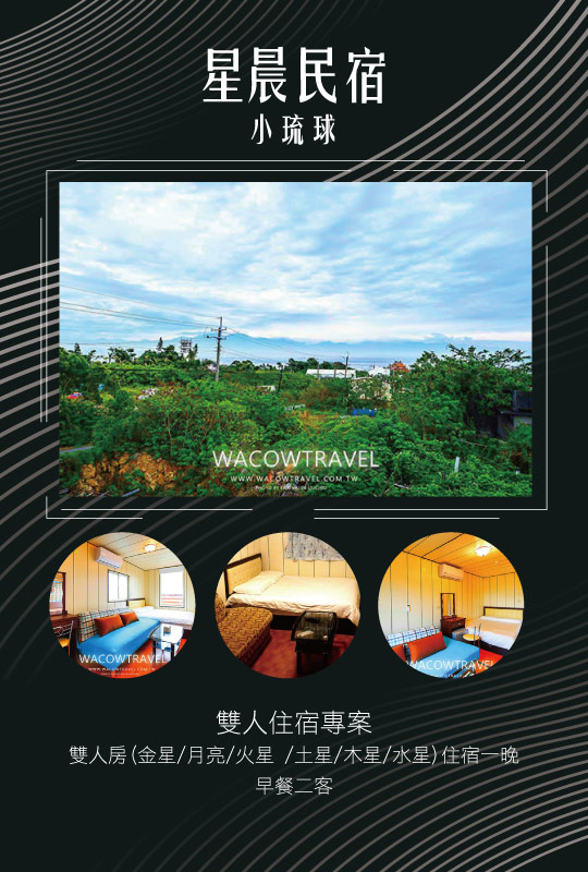 只要1380元,即可享有【小琉球-星晨民宿】快來小琉球潛水呀!雙人住宿專案〈含雙人房(金星/月亮/火星 /土星/木星/水星)住宿一晚 + 早餐二客〉