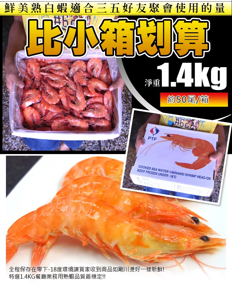 【優鮮配】3-4熟白蝦業務專用1.4KG盒(每盒約50尾)超值免運組是最近我買過算cp值蠻高的一個商品,下面是賣場提供的商品簡介: